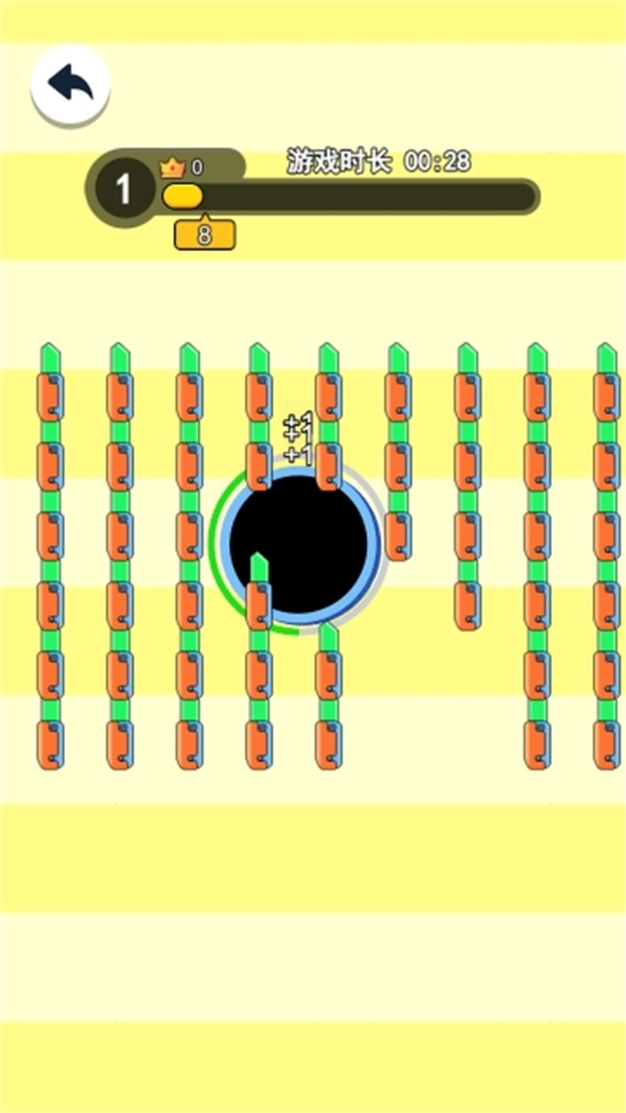 1、核心玩法围绕黑洞吞噬展开,吞噬物品能让黑洞成长,成长后的黑洞又可吞噬更小黑洞,形成成长 -对抗的循环机制。