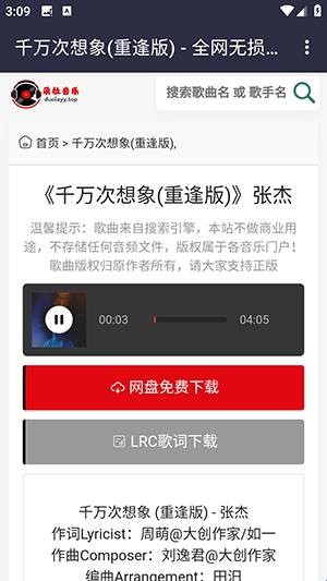 1、所有音乐资源均免费开放,支持在线收听与mp3格式下载。