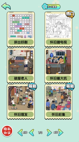 1、进入游戏后,玩家将面对多种游戏模式,如拼出好剧、怀旧蹭电视、破屋老人等。