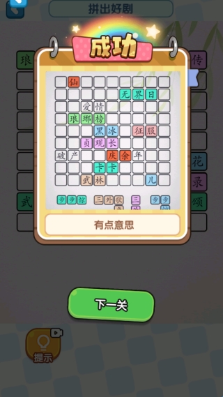 2、在“拼出好剧”模式中,玩家需要将汉字串联起来,搭配出电视剧的名字。全部连接正确后,即可成功闯关,迅速进入下一关。