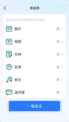 3、在旧设备上进入列表,选择要迁移的数据类型,点击【一键发送】;