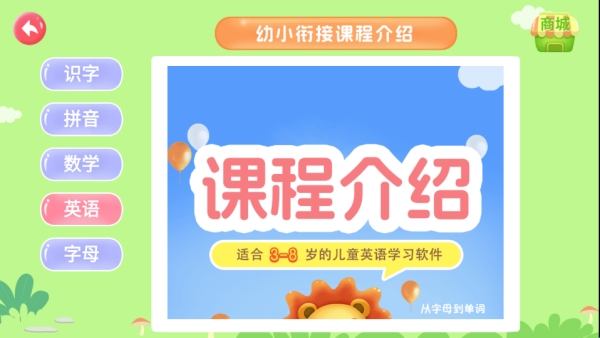 1、课程学习:软件提供了英语单词的课程学习,让宝宝可以随时观看课程,循序渐进的学习英语。