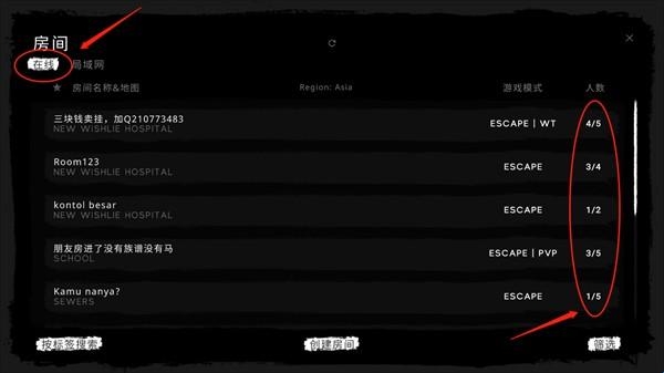 2、在【房间】中,可以看到其他玩家所创建的房间,任意点击一个房间即可与其他游戏玩家共同畅玩。