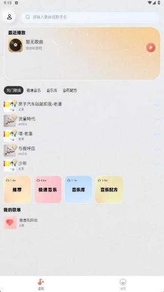 2、首页呈现了丰富的音乐素材,还有推荐、我的歌单管理等功能。