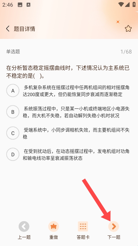 4、答题时,做完当前题点底部【下一题】,继续答题流程推进。