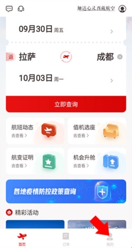2、来到【我的】界面后,点击上方头像登录我们的西藏航空app账号