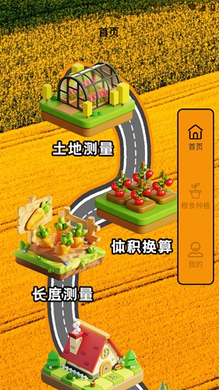 2、在首页即可看到土地测量、体积换算、长度测量等功能;
