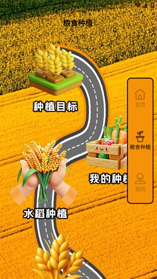 3、点击页面右侧的‘粮食种植’,即可看到种植目标、我的种植、水稻种植等功能;