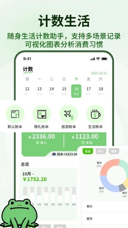 4、计数生活:方便用户有效计数自己的生活,进而可以轻松管理生活,便捷管理财务明细。