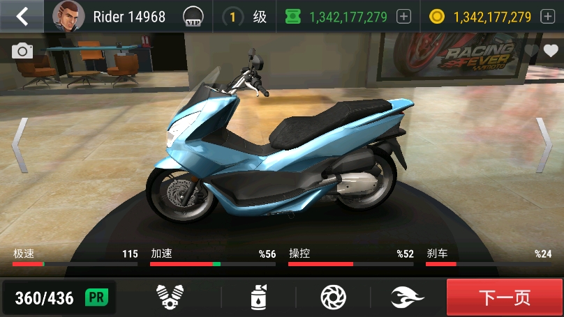 5、在陈列室中,玩家可以对摩托车进行升级;