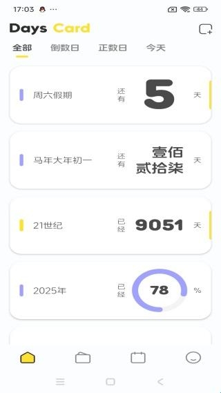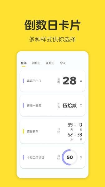 2、倒数日卡片:支持用户对自己的倒数卡片夹来实时创建,从而可以实现倒数日计时,查看相关的时间。