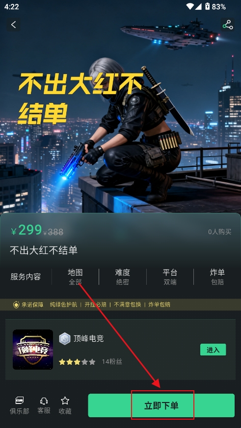 5、选择好陪玩人数、时间等,再点击立即下单即可