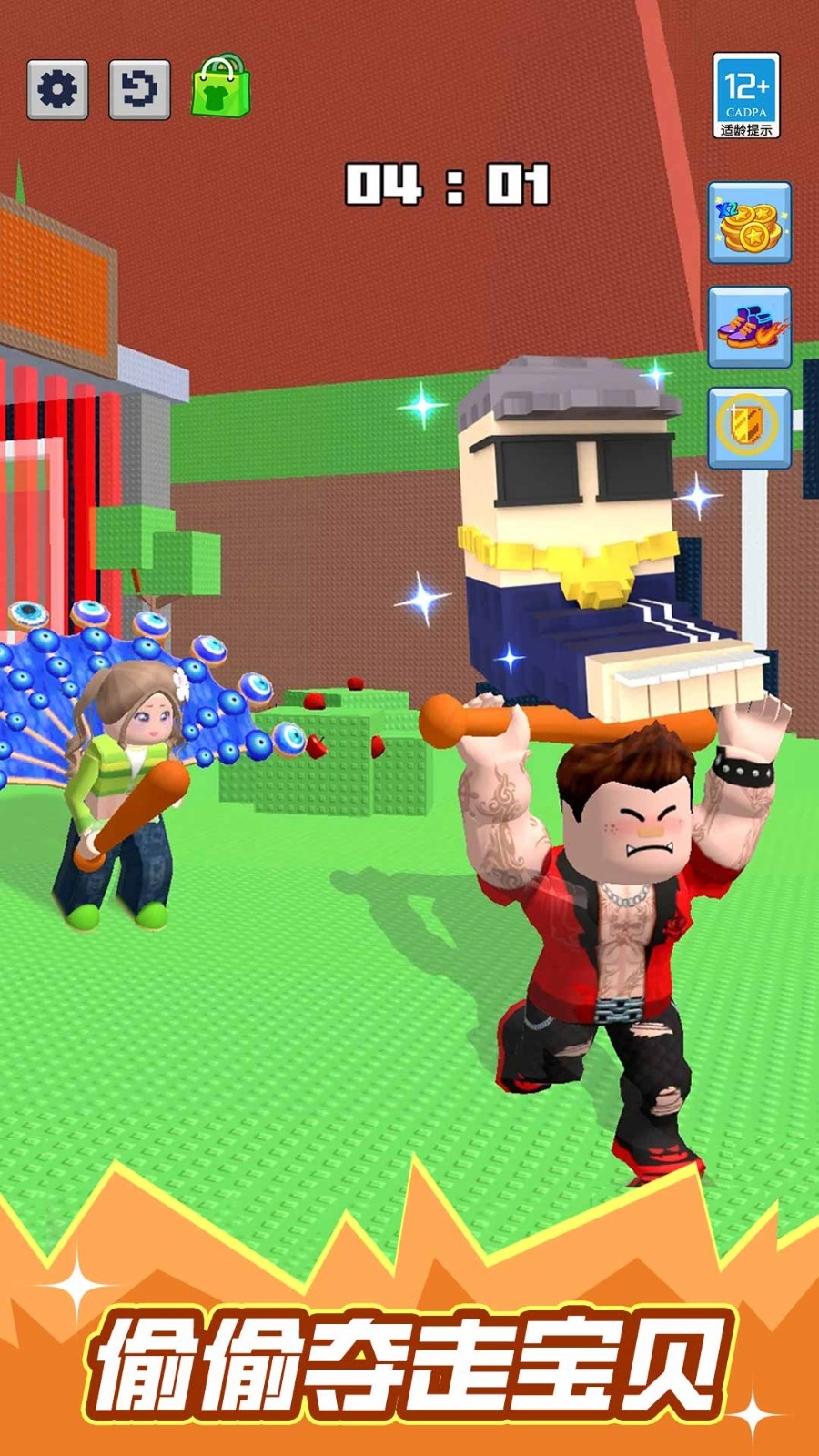 别抢我的宝,这是一款宝物抢夺冒险游戏,在这个沙盒世界内,你需要不断搜集宝物,并搭建一个房子置放它们;在抢夺过程中,玩家将和其他玩家一起争夺,设置机关线索,防止宝物被偷。并且,宝物获取的难度越高,那么就是高级宝物,你必须快速找到并隐藏好,降低被偷概率!