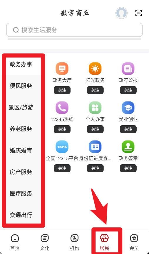5、居民栏目集合政务办事、便民服务、医疗、交通等多类功能,满足日常生活需求。