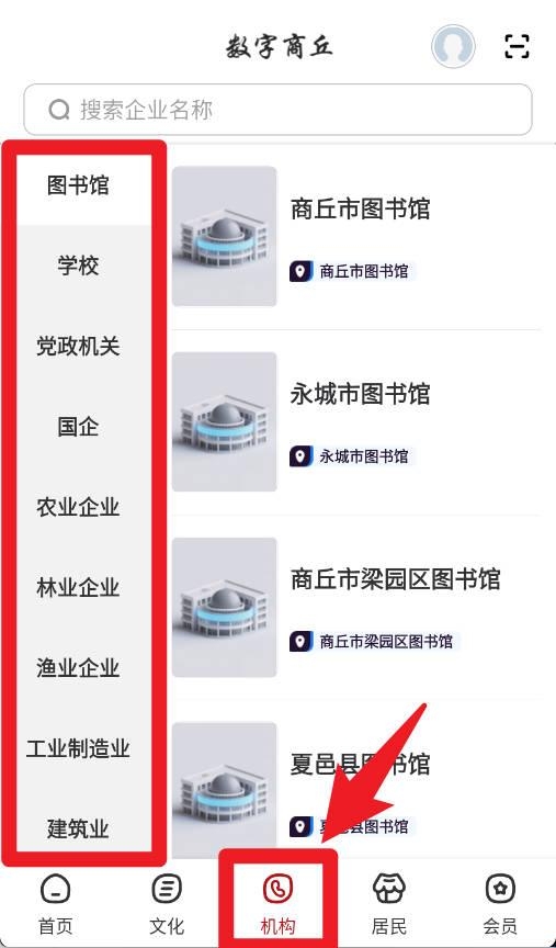 4、机构栏目可按图书馆、学校、党政机关、企业等分类查找,方便定位所属机构。