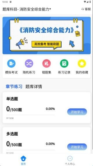 3、在首页展示了模拟考试、随机练习等板块,自由尝试,点击开始学习即可开始刷题操作 。