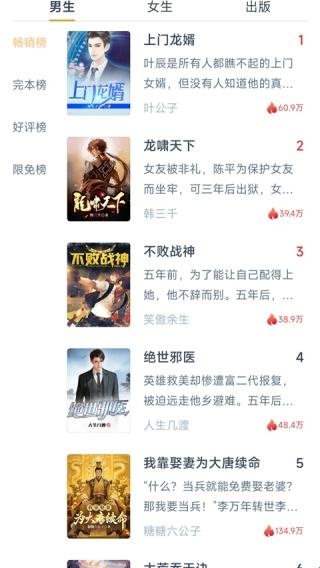 2、根据各种排行排名,能够查找到喜欢的小说作品;
