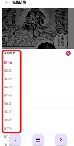 2、打开漫画后可以直接阅读,点中间按钮可呼出章节目录。
