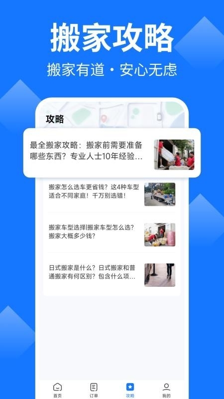 5、搬家攻略:详细的搬家攻略,了解更多有关搬家的建议,便于日常搬家更加省心,节省时间;