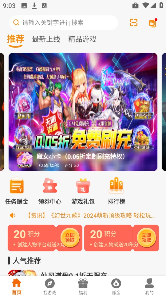 1、汇集了众多热门游戏,包括各种类型和风格,满足不同玩家的喜好。无论是小游戏还是大型手游,都能在这里找到