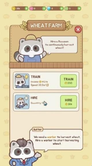 3、雇佣新的浣熊员工,并通过培训系统提升它们的技能,让工厂运营更加顺畅。