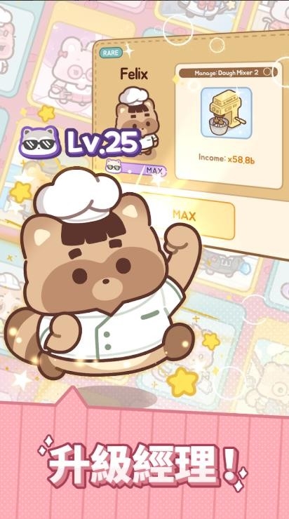 1、玩家将在游戏中扮演面包工厂的老板,带领一群浣熊员工实现“从小店到帝国”的经营梦想。