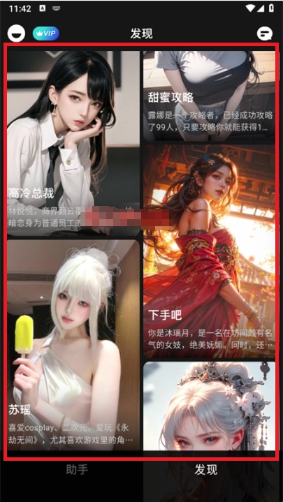 4、在”发现"页面浏览多种风格的Al角色,丰富互动选择。