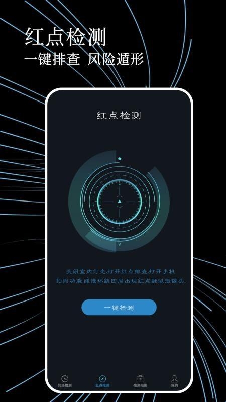 防偷拍检测是由昆明简优技术开发有限公司推出的一款强大的旅游出行防偷拍手机软件,该软件中为您提供了诸多防偷拍强大的功能,像是网络检测,红点检测等等让您轻松检测出您住的酒店,民宿或卫生间是否有偷拍设备,并且该软件还为您提供了诸多防偷拍的知识,供您学习查看,轻松学习一些护身技巧。如果您对这款软件感兴趣的话,那就快来下载试试吧!
