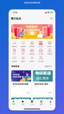 2、各种资源,如热门话题、TED演讲、真实试题、电影配乐等。