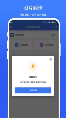 3、如【拍照翻译】,按照提示启动拍照权限;