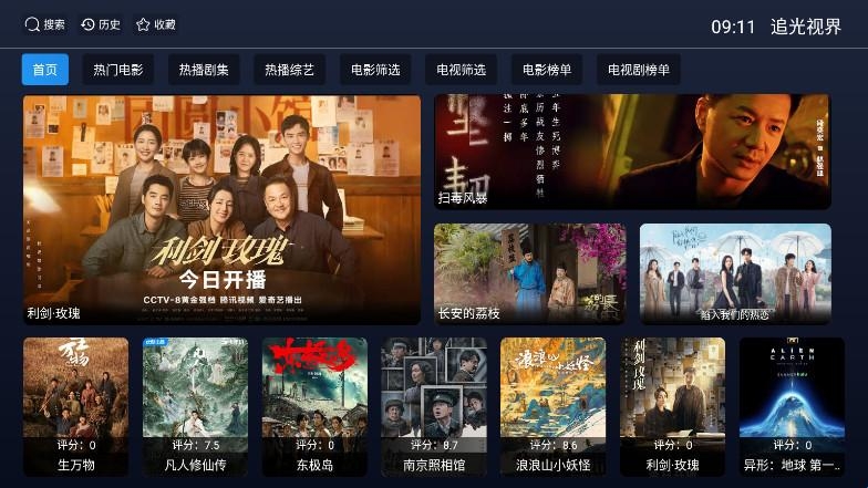 1、下载安装追光视界软件,首页陈列了最新的热门电影、热播剧集、热播综艺、电影筛选等板块内容。