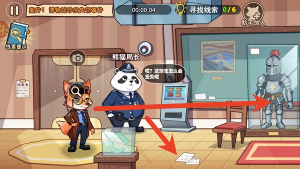 1、进入游戏后,你需要邀请一位好友组成侦探小队,分别选择扮演狐狸警探或熊猫局长,随后在警局中从公告板上接取第一个需要解决的神秘案件。