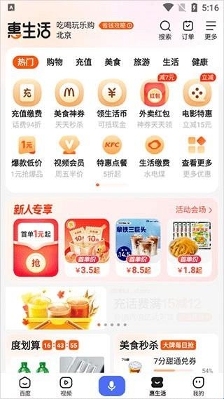 3、“惠生活”含有很多的福利活动和当地的吃喝玩乐购,可以登录后秒杀好物;