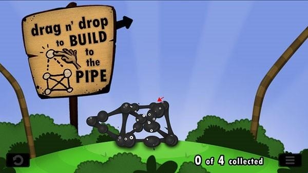 这个关卡需要你将怪物嘴前的粘粘球,搭成一座桥,到达远处,使墨汁进入山谷。