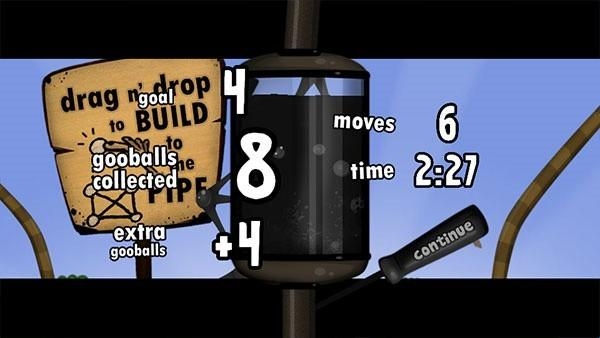 如果你可以掌握平衡,就可以直接将粘粘球架到水管那里,完成关卡。