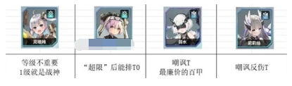 2、T0角色属于抽到可以无脑练的,推荐心纸、王女、静、斯卡蒂。