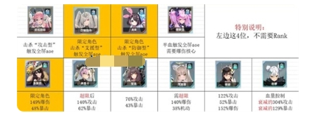 5号、6号、7号位置则由补刀型攻击角色担当,增强队伍的整体火力。