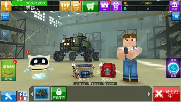 2、游戏商店中可以购买到各类战车组建,包括方形模块、三角模块、舱口甲板、车轮、炮塔、盾牌、涡轮机、尾翼等等,你可以发挥自己的创意,自由搭配组合,打造你专属的无敌战车。
