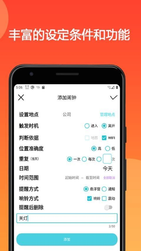 3、更加强大:和传统的闹钟相比较的话,地点闹钟拥有更加强大的闹钟提醒功能,这些是传统闹钟无法做到的地方。