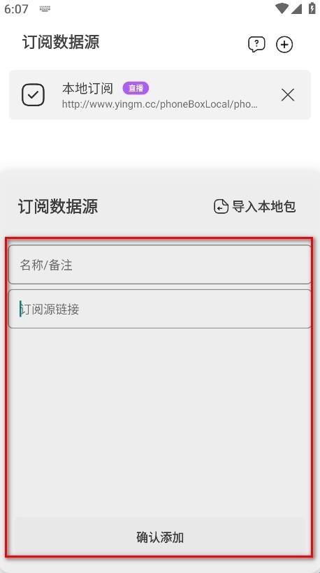 4、输入名称/备注,请复制粘贴上面一个问题中的订阅源地址,然后点击确认添加即可。