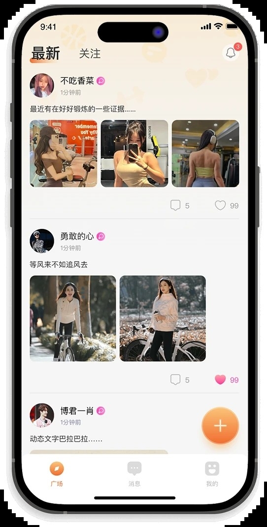 3、广场动态:为用户提供了线上的社区动态广场,这里可以分享自己的运动日常,查看更多精彩动态。