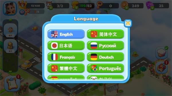 1、进入游戏后点击头像下方的齿轮按钮,然后点击language选项。
