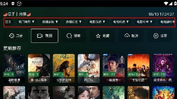 1.打开瓜子影视TV,于首页上方可见热门电影、热播剧集、热播综艺等板块。