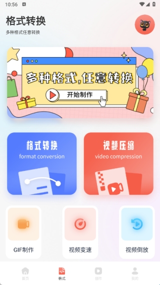 3、在格式页面中提供了格式转换、视频压缩、GIF制作以及视频变速和视频倒放等功能。