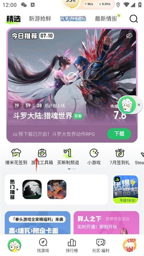 1、打开好游快爆app,在首页点击游戏工具箱