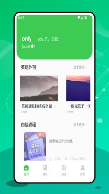 1、进入到平台首页,有英语外刊,四级课程提供,便捷选择去学习。
