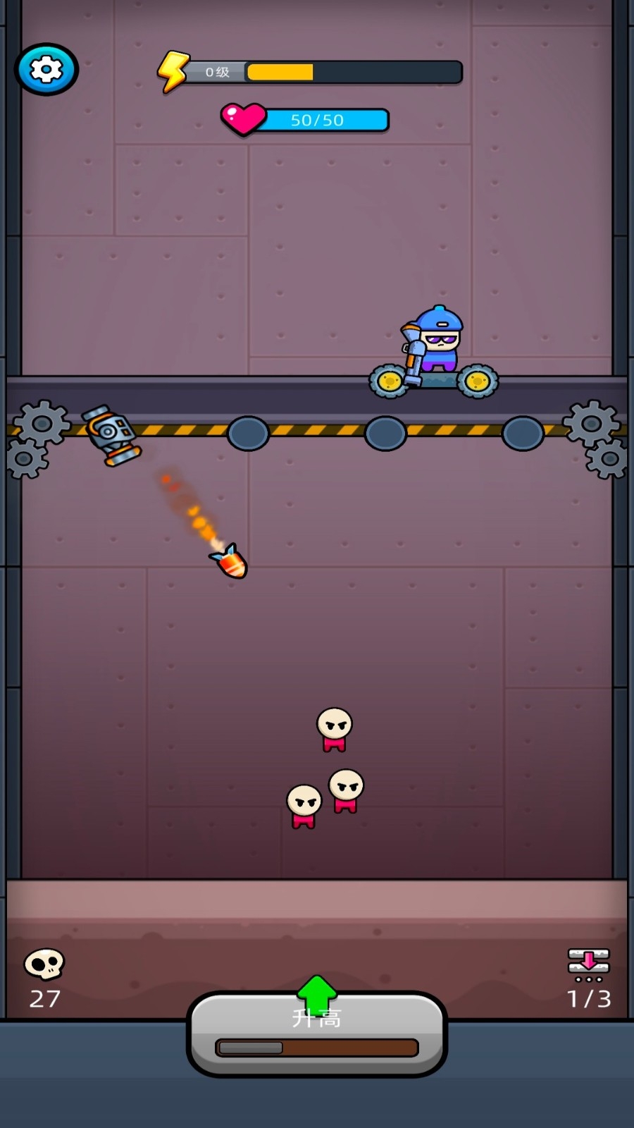 2、滑动屏幕调节升降高度,根据敌人位置切换高低作战姿态,构建基础防御体系。