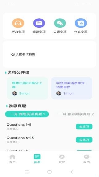 6、雅思真题:在应用中就能做雅思真题,帮助你能轻松巩固自己的水平,保障用户学习无忧;