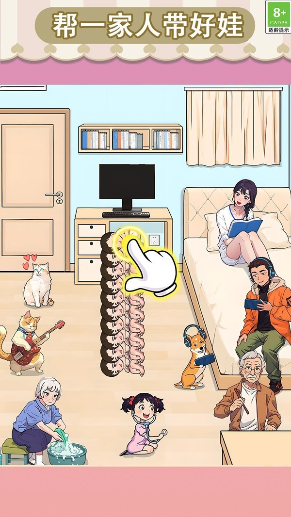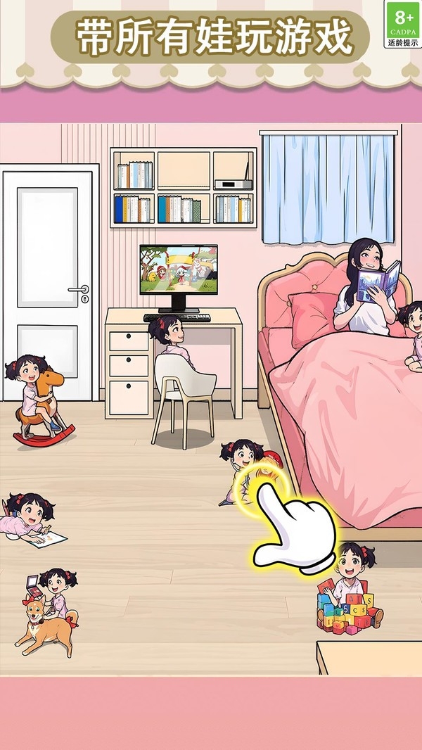 2、场景设定在温馨房间内,细节丰富且贴近生活,能让玩家快速代入情境,增强游戏过程中的沉浸感与亲切感。