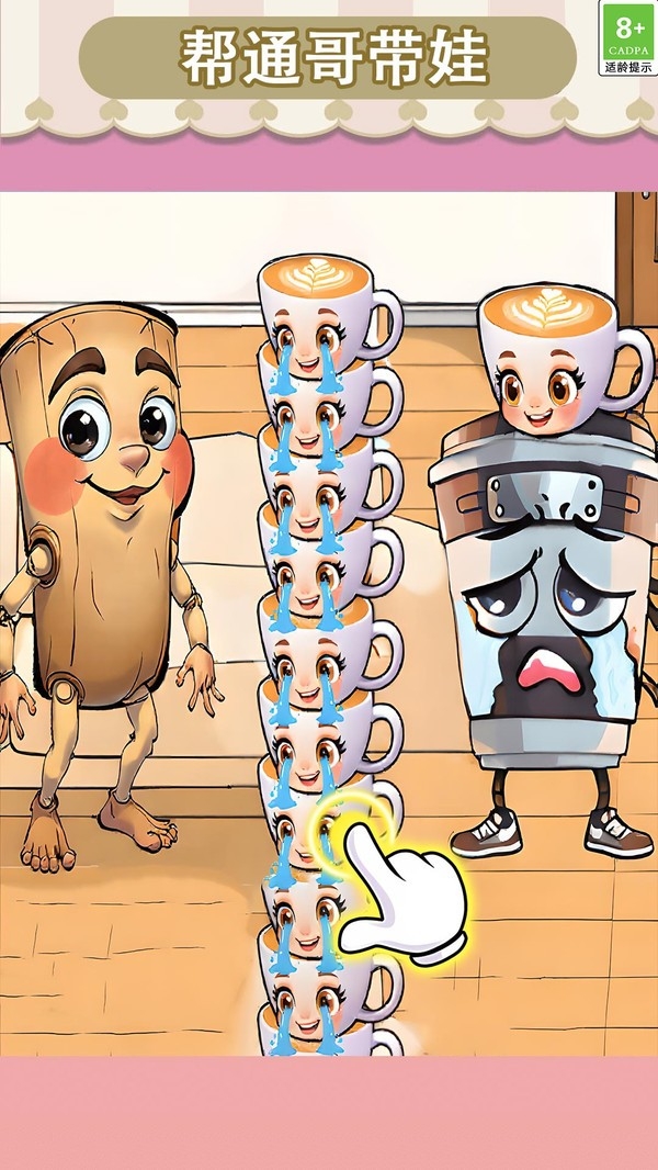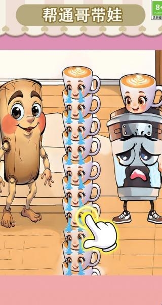 1、进入关卡之后,完成目标任务,比如帮咖啡女孩带娃。